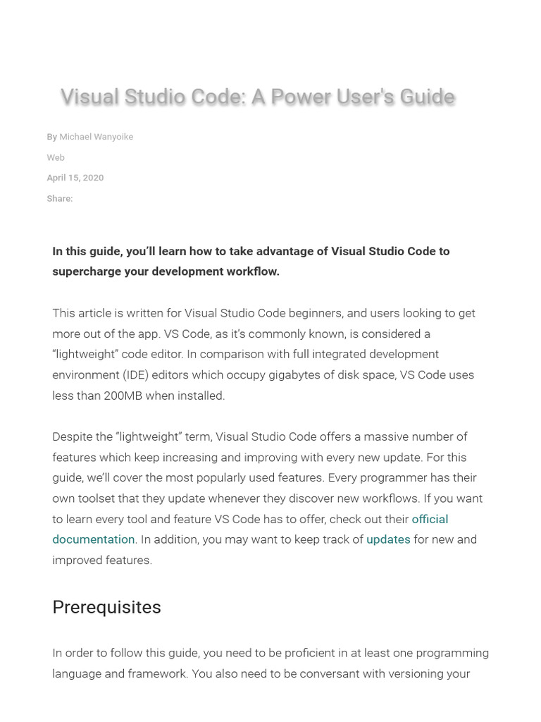 About Documentation For Visual Studio Code