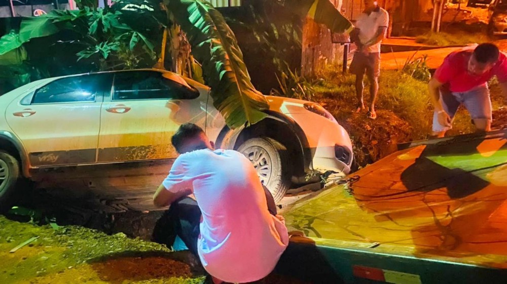Um Carro Do Modelo Fiat Palio Praticamente Voou E Caiu Em